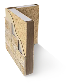 Сэндвич-панель ThermoHouse состоит из ОСП-плит и слоя пенополистирола. ОСП-плита, в свою очередь, на 90 % содержит древесную стружку, полученную при санитарной вырубке леса. Остальные 10 % составляют натуральные смолы, наполнители, отвердители и соль борной кислоты, которая усиливает защитные свойства ОСП. Из аналогичных плит изготавливается тара для фруктов, овощей и других продуктов питания.